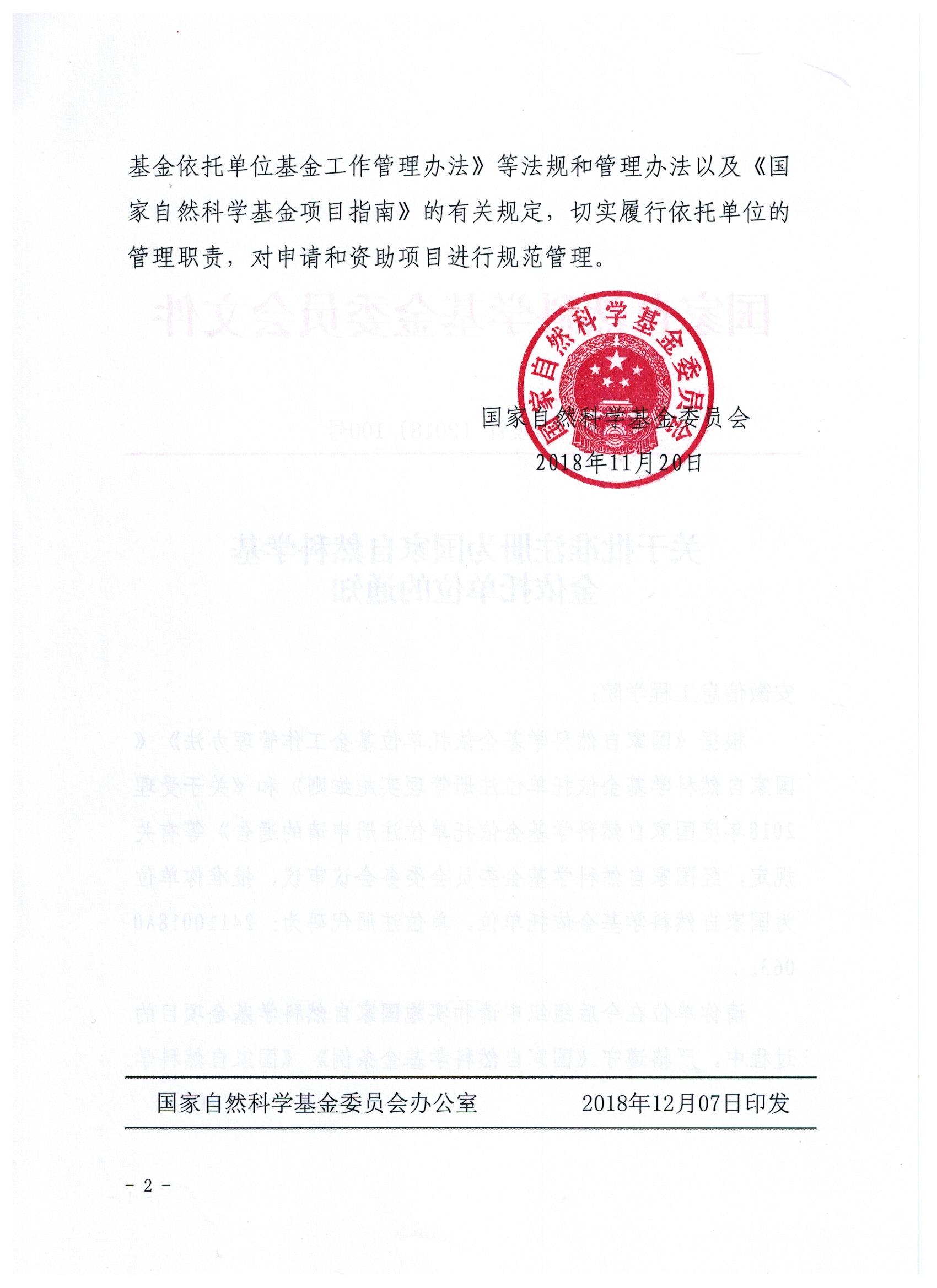 本网讯 根据国家自然科学基金委员会刚刚公布的《关于公布2018年国家自然科学基金依托单位注册审批结果的通告》(国科金发计〔2018〕99号),我校通过国家自然科学基金委员会的审议,被批准注册为国家自然科学基金依托单位。据悉,本年度共有184家单位获批国家自然基金项目依托单位。
