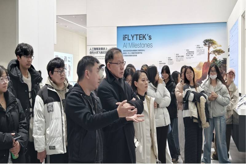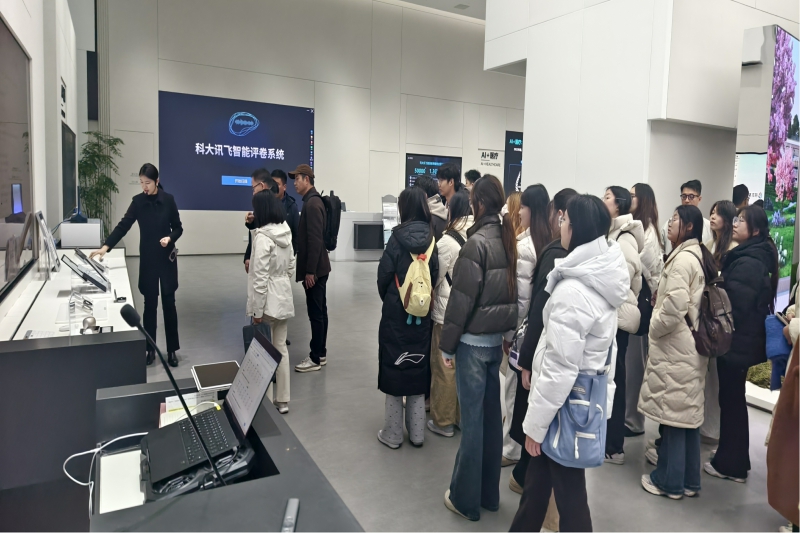 本网讯 12月15日,“2025讯飞设计周暨AI+设计产教融合创新发展论坛”在合肥科大讯飞小镇启幕。本次活动由科大讯飞股份有限公司主办、科大讯飞设计管理委员会、中国工业设计协会人工智能分会、安徽信息工程学院艺术设计学院联合承办。艺术设计学院副院长周建、骆琼率队,数字媒体教研室负责人张超、产品设计专业教师薛遥、部分骨干教师,以及产品专业42名学生奔赴产业一线,把《交互原型设计》课堂搬进企业现场,拉开学院“讯飞设计周”校企共建系列活动的序幕。
