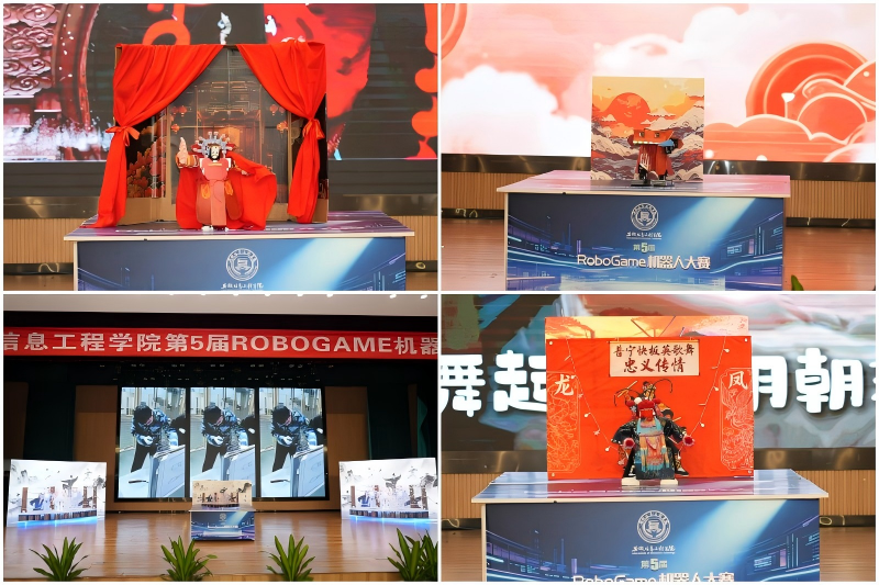比赛环节,从全校选拔脱颖而出的16支参赛队伍依次登场。各团队围绕文化传承、科技生活等创意主题,独立完成了机器人的结构设计、电路搭建和程序编写与调试等工作。舞台上,融合了戏曲、民俗舞蹈等传统文化元素的机器人表演生动精彩,展现了工程技术与艺术创意的巧妙结合,赢得了现场阵阵掌声。