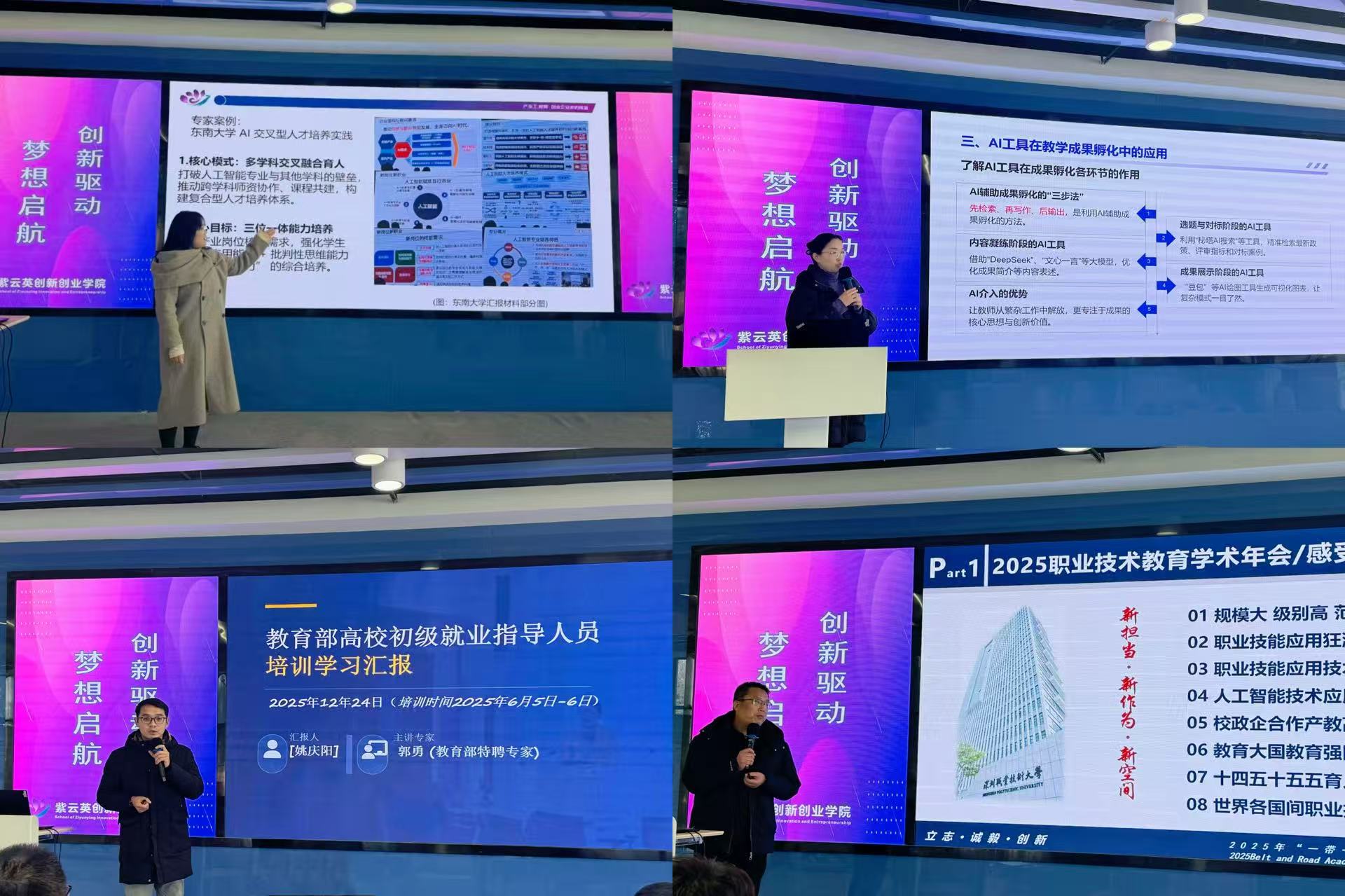 随后,综合素质教研室教师依次分享外出培训学习成果,分享内容涵盖AI职教与产业需求对接、教学成果奖孵化路径、职业生涯教育实施、技能人才培养模式等方面,教师们结合学院教学管理实际展开深度解读与反思,为优化教学管理、创新教学模式等提供了可行的思路。
