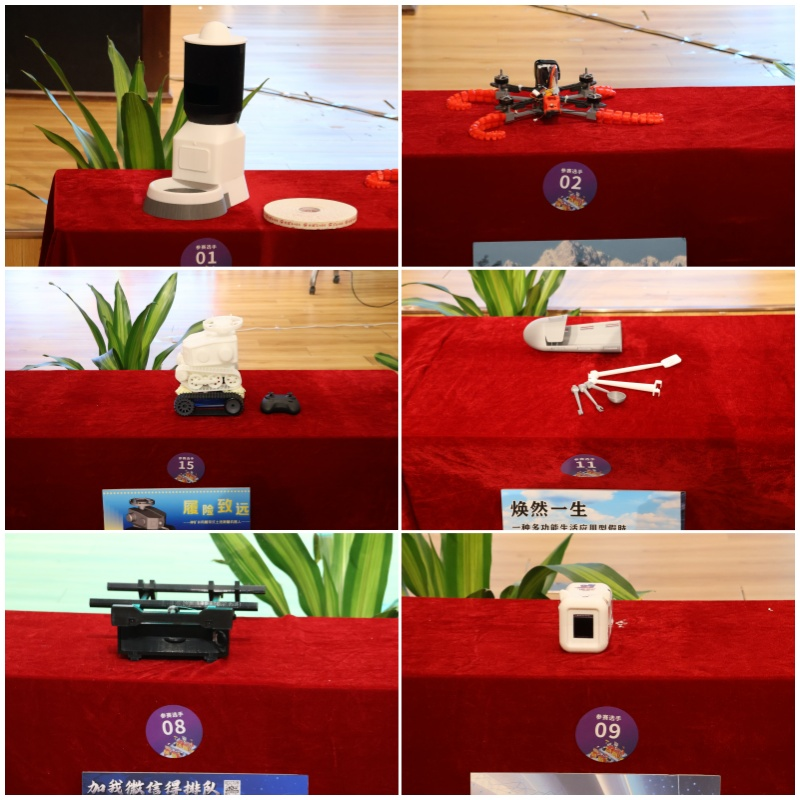 从参赛作品来看,聚焦工业场景优化、前沿技术应用、区域产业需求的项目占比超60%,既充分展现出学子们将课程理论与社会产业需求紧密结合的创新视野,也印证了“立足校园学知识、放眼社会练创新、对接产业做实践”的“课赛产”协同育人成效。决赛现场,多支队伍带来创新实物展示,将课程中的设计思维、技术原理转化为可落地的实体成果,成为赛事一大亮点。