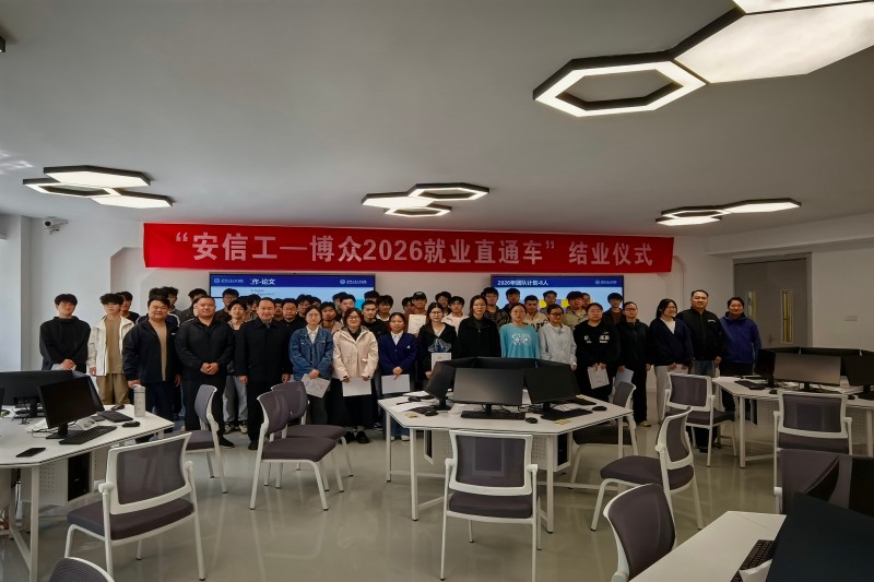 本次“安信工—博众就业直通车班”于2026年3月初正式开班,吸引了来自电气与电子工程学院、机械工程学院相关专业的45名学员。项目紧密围绕企业实际生产需求与技术前沿设计课程,由校企双方共同组织教学与考核。在一个月的培训中,学员们经历了系统的理论强化与实战演练,综合素养与专业技能得到显著提升。最终,38名学员凭借扎实的技能和优秀的综合表现,通过企业与个人的双向选择,成功获得录用资格。仪式最后,与会领导与嘉宾共同为顺利结业的学员们颁发了“就业直通车”结业证书,并合影留念。