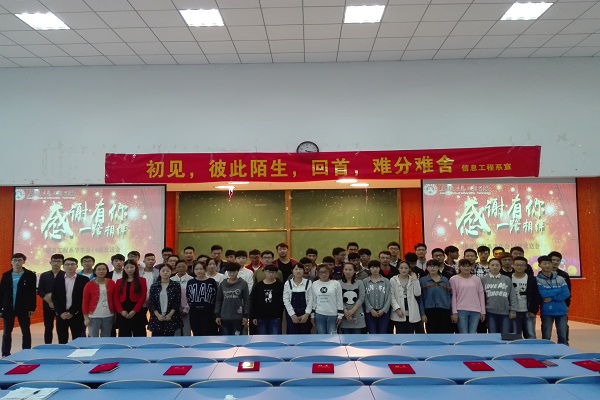 本网讯 初见,我们彼此陌生;回首,别离难舍难分。10月19日下午,信息工程系学生会2014级欢送大会在新芜校区A1W301教室拉开帷幕。信息工程系学工秘书孙惠玲、14级辅导员王晓林、15级辅导员李超君出席本次大会,学生会60多名成员参加。