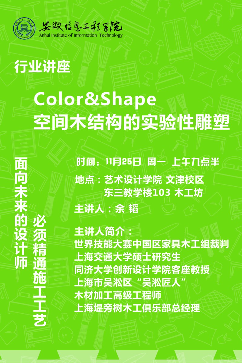 【行业讲座】关于举办“Color&Shape 空间木结构的实验性雕塑”讲座的通知