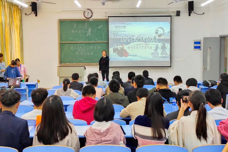 书生琴棋书画千,电院才子芳华见。为充实新生的课外生活,提供自我放飞的平台,电气与电子工程学院于10月23日举办2019级新生才艺大赛院部选拔赛。此次大赛由学院团总支书记华静、学生会指导老师梁悦、曹栋,吴猛和王欣桐担任评委观看指导。(歌舞飞扬,青春如我)大赛包括声乐、舞蹈、语言和器乐四大类。在主持人的开场白后,第一个出场的是自动化1904班的苗同志,他以一首《嚣张》成功带动了整个比赛现场的气氛;电信1902班的4位同学带来的诗朗诵《四月的纪念 致橡树答木棉》则表现了民国时代女诗人舒婷的人格理想;舞蹈《采薇》向我们展示了中国古典舞的独特魅力;小品《TV秀》用诙谐幽默的语言演绎了三个不同的场景,讽刺了现实;由25位同学一同表演的歌伴舞《稻香杯子舞+演唱》,斩获了观众们的一致好评,比赛现场掌声雷动。(评委点评)本次才艺大赛让学生领略到书本之外独特的美,激发学习才艺的热情。华静点评时充分肯定了各位选手和团队的实力,也提出了有针对性的建议,并鼓励学生把握每次自我展示的机会,积极参加学生文体活动,更加
