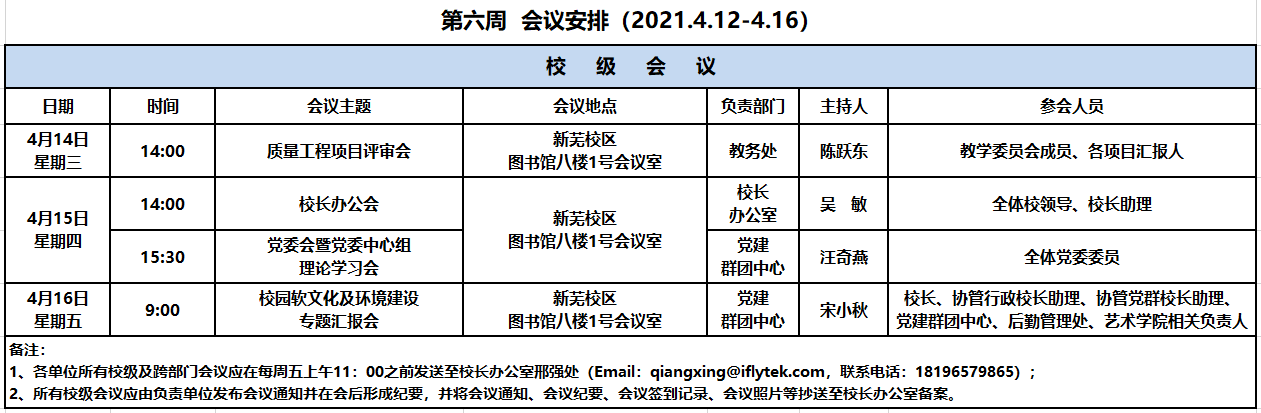 为进一步加强教学质量管理,规范教学行为,提高课程教学大纲的编制质量,根据《安徽信息工程学院课程教学大纲编制质量检查实施方案》的通知安排,教务处牵头组织成立校级检查组,于2021年3月24日—2021年3月31日开展了课程教学大纲编制质量检查工作。在深入学院检查前夕,教务处组织召开了教学大纲检查工作会,所有校级检查组成员均参与了本次会议,程玉林从教学大纲检查的要点,检查重点,以及如何检查等方面进行了相应的培训讲解为随后的检查工作提供了依据。(教学大纲检查工作会现场)随后,检查组深入七个学院,分别从教学大纲编制的规范性、课程目标、教学内容与要求、课程教学方法、课程考核方法以及教材及参考书等六个方面逐一开展检查工作。(各学院检查现场)通过此次检查,学校将C2018版培养方案中设置的所有课程的教学大纲都进行了一次认真梳理,并对出现的共性及个性问题及时与各学院进行了沟通反馈。教学质量是学校的生命线,学校把规范教学管理,提高教学质量作为学校发展的第一要务,坚持以教学质量为核心,细化服务、注重过程、明