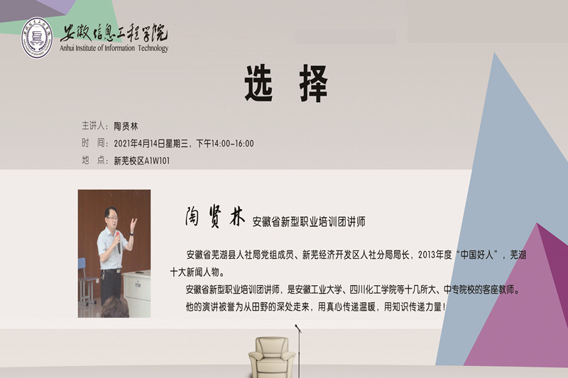 本网讯 为进一步引导教师潜心教书育人,坚持立德树人根本任务,推动课程教学创新,帮助青年教师成长,促进我校教师队伍形成对卓越教学的价值追求,自觉融入高等教育“质量革命”的时代大潮,学校特举办第四届青年教师教学竞赛暨教师教学创新大赛(以下简称“大赛”)。学校对本届大赛高度重视,从2020年12月开始搭建大赛舞台,经过各学院初赛推荐,共计10支参赛团队(个人)进入校级决赛。2021年4月7日下午,校级决赛在博学楼(A3)W301智慧教室拉开帷幕,晋级团队(个人)在现场展开激烈角逐。安徽信息工程学院校长吴敏、副校长陈跃东、安徽外国语学院副校长董毅、安徽师范大学研究生院副院长韩玉刚、安徽工程大学教务处副处长许钢及安徽信息工程学院校长助理兼教务处处长孙辉担任此次大赛评委,比赛正式开始前吴敏为大赛致辞。(吴敏校长致辞)本次大赛分为网络评审与现场评审,网络评审包括课堂教学实录视频和教学创新报告两个部分,现场评审是各参赛教师立足自身教学课程,结合教学大纲和教学实践,全面说明整门课程的设计思路,突出教学改革