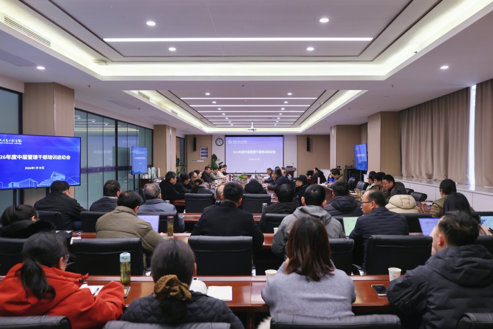 本网讯 为提升中层管理干部的履职能力与管理效能,学校于1月18日召开2026年度中层管理干部培训启动会,并在18日和20日相继举办了两场干部管理能力提升专题培训。副校长汪忠国主持培训会,全体中层管理干部参加会议。 (图为培训会现场)启动会上,校长吴敏围绕治校理念与工作方法,向与会人员分享了自己的心得体会,并立足学校现阶段发展目标,对中层管理干部的能力提升提出了具体方向和要求。18日下午举行的首场培训聚焦“学科建设及硕士点培育机制体系建设”,特邀高校资深专家进行专题授课。专家凭借丰富的实践积累,系统阐述了团队建设在硕士点建设中的核心作用,结合典型案例,剖析了学科建设的可行路径,并强调学科建设应具备系统思维,既要对接国家战略,又要服务地方产业。围绕硕士点申报涉及的学科点遴选、指标优化、材料凝练等关键环节,专家逐一提供了具有操作性的方法与步骤指导,为我校稳步推进硕士点建设工作提供了宝贵经验。20日下午,学校还邀请了具有多年高校管理实战经验的专家,以“中层干部的角色定位与工作方法”为题进行授课。