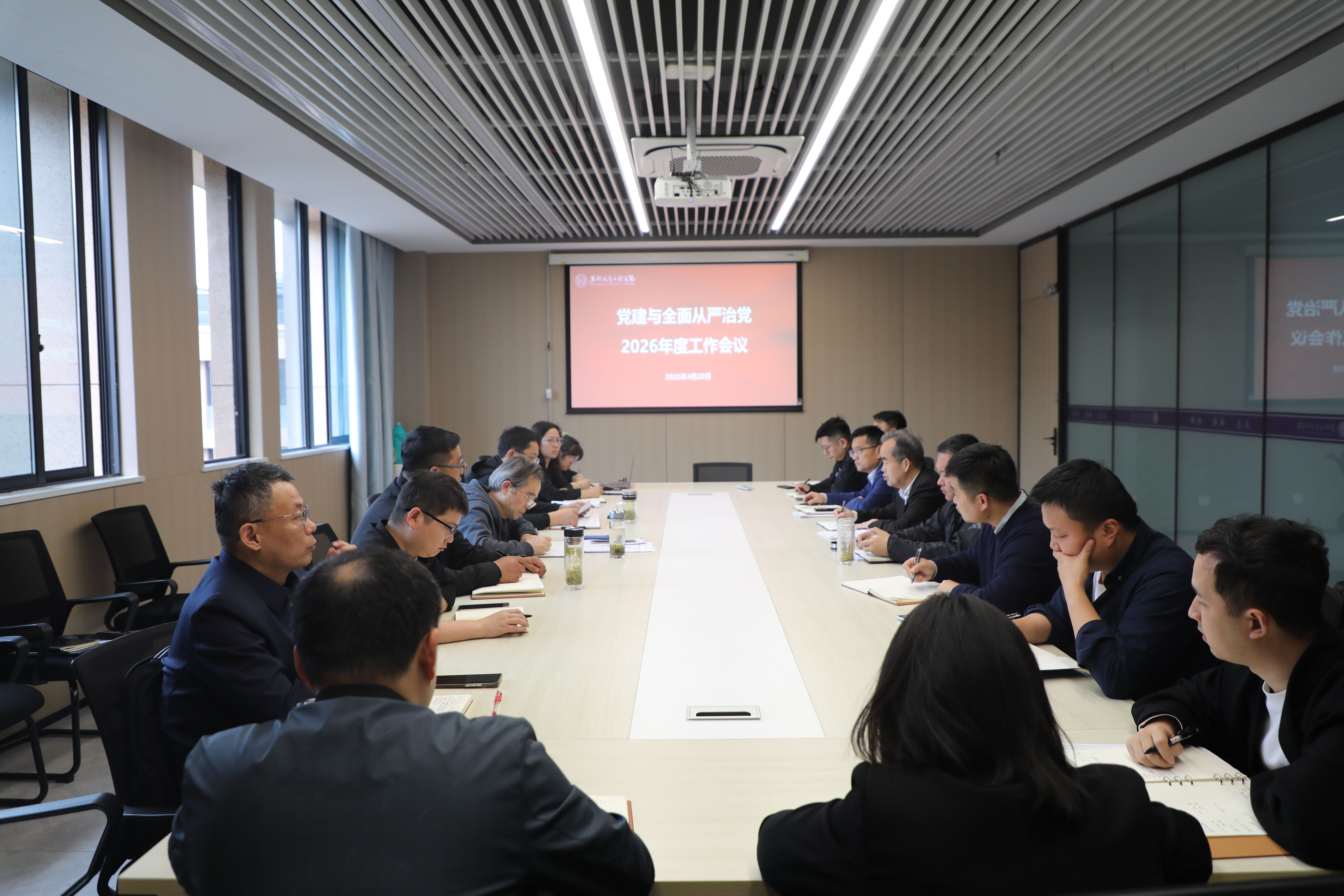本网讯 4月20日下午,学校党委在综合科技楼五楼一号会议室召开党建与全面从严治党2026年度工作会议。校党委书记陈永红,党委各部门负责人,各党总支书记、副书记出席会议。校党委副书记、纪委书记吴晓主持会议。(图为会议现场)会议传达学习了全省学校安全工作电视电话会议、2026年度全省高校思想政治工作会议及新时代立德树人工程实施推进会精神;党委组织部、宣传部等部门对2026年度重点工作进行部署;校纪委通报近期相关案例的处理情况。陈永红结合学校实际工作就做好学校党建和全面从严治党工作做出具体部署,并对2026年度重点工作提出四点要求:一是要把牢政治方向,强化思想政治引领,要旗帜鲜明讲政治,筑牢思想防线,凝聚育人合力,真正把立德树人根本任务落到实处;二是要加强组织建设,切实做好党员发展与教育管理工作,从提升基层党组织组织力、严把党员发展的入口关培养关、提升党员教育管理的精准度与实效性三个方面,全面夯实基层党组织根基,锻造过硬党员队伍;三是要压实主体责任,严肃党内政治生活,全体党员干部要坚持压紧压实