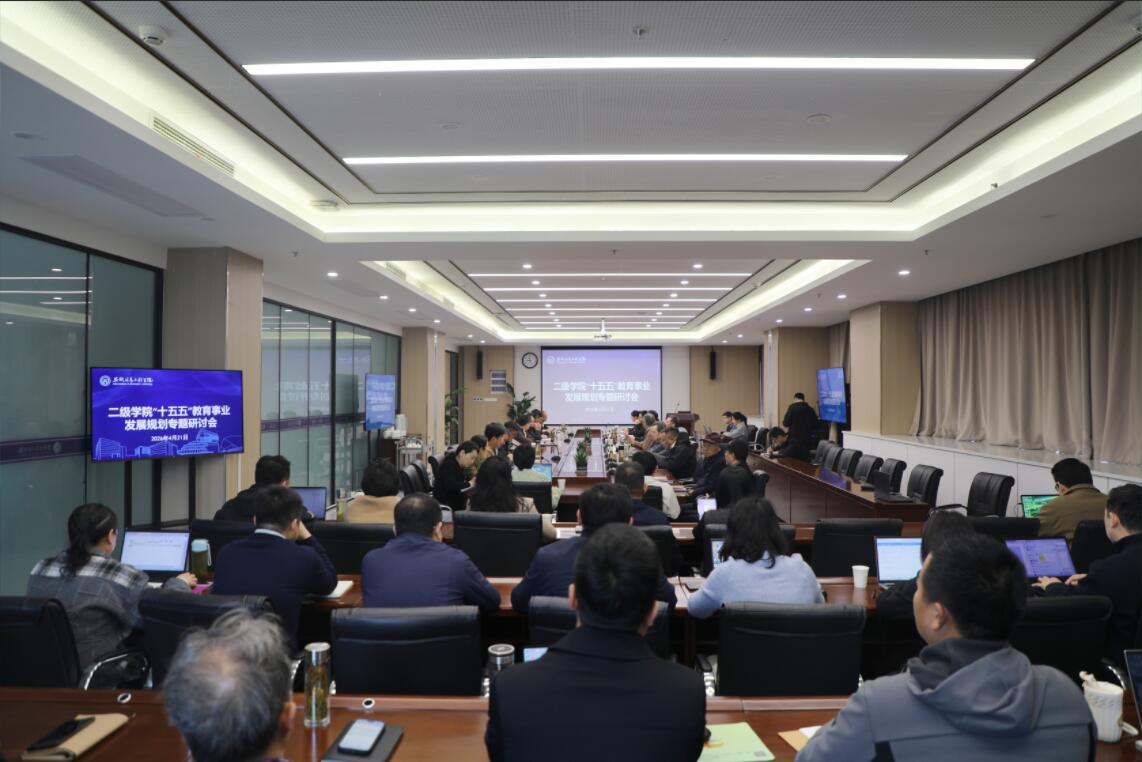 本网讯 4月21日上午,学校在综合科技楼一楼1号会议室召开二级学院“十五五”教育事业发展规划专题研讨会。校长吴敏主持会议,全体校领导、各学院中层管理人员、各职能部门主要负责人参加会议。会议听取了各学院关于“十五五”教育事业发展规划的汇报,校领导根据各二级学院实际情况,为规划编制提供了多视角、多层次的思路与建议。会议明确了“十五五”期间各学院重点建设目标,统一了规划框架。会议要求各学院围绕教育教学改革、学科专业布局优化、人才培养模式创新、师资队伍建设等方面,精准对标学校总体规划目标与各项专项规划要求,构建起层次分明、有机统一的发展规划体系。 (图为专题研讨会现场) 吴敏在总结讲话中强调,“十五五”规划是指导学校未来五年发展的纲领性文件,必须高度重视、扎实推进。各单位要充分做好调研与论证,确保规划符合学校定位与时代要求,强化目标的可操作性,聚焦差异化特色办学与高质量发展,确保规划编制工作落地见效。本次研讨会进一步统一了思想、明确了方向、凝聚了共识,为学校“十五五”教育事业发展规划的科学编制