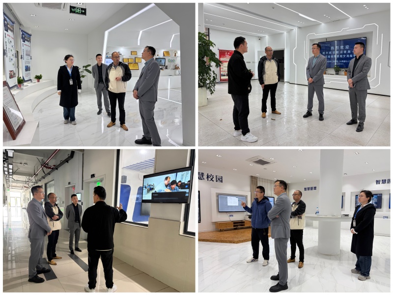 本网讯 4月21日,宿州航空职业学院党委副书记、院长李德均,就业处处长彭超一行来校考察交流。学校副校长董方敏,招生就业处处长刘德胜、副处长杨文宝,教务处副处长刘春静等热情接待来访人员。李德均一行实地参观了计算机与软件工程学院和双创中心。在计算机与软件工程学院,考察组重点考察了工业互联网产业学院,现场观摩学生项目实践过程;在双创中心,考察组依次参观成果展厅、智慧校园展区及RM机器人竞技场地,详细了解我校在智慧教育平台建设、专利成果转化及创新创业教育等方面的成果。(实地参观) 座谈会上,董方敏代表学校欢迎考察一行,并介绍了我校产业引领、项目驱动的教改思路,强调“以赛促学”的育人理念是提升学生综合素养、保障培养质量的关键举措。李德均高度评价我校在应用型人才培养和创新创业教育方面的成就,并提出四项合作方向:一是希望加强机器人及计算机领域的学科交流;二是深入探讨专升本联合培养模式;三是在专业建设、产教融合、校企合作方面深化经验交流分享;四是针对部分科技类专科生就业困难情况,希望加强校企联动,拓宽就