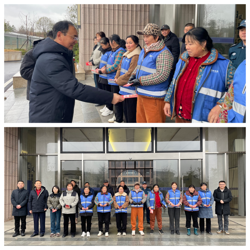 本网讯 2月16日上午,副校长朱尚玉带领后勤管理处、保卫处等相关部门及物业公司负责人,深入校园各一线岗位,代表学校向坚守岗位的一线工作者致以问候,并送上新春祝福,同步检查各岗位工作落实情况,强调要严守安全底线、强化责任担当,为新学期校园平稳运行筑牢保障。慰问组逐一走访各一线岗位。因15日夜间降温伴随大风天气,校园图书馆旁部分行道树发生倒伏,慰问途中,朱尚玉一行恰逢绿化师傅与物业保洁人员正在现场紧急处置倒伏树木。他停下脚步向现场工作人员表达了感谢,并叮嘱工作人员在作业时注意自身安全,同时为大家送上了节日祝福。随后,慰问组先后走访多个关键岗位:在综合楼保洁岗,朱尚玉对保洁人员寒假期间无休坚守、全力维护校园整洁环境的辛勤付出表示感谢;在门卫岗,他详细询问春节值班安排、出入人员及车辆登记流程,实地检查监控设备运行状态,对工作人员“守好校园第一道门”的责任担当给予充分肯定;在绿化及天鹅饲养岗,他仔细查看苗木养护区域与天鹅栖息地,叮嘱工作人员做好苗木防寒保暖和天鹅饲料安全管理;在宿管、维修、炊事员岗