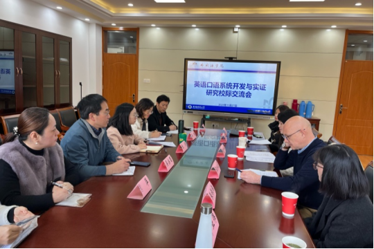 本网讯 11月27日下午,通识教育与外国语学院副院长胡叶婷率领教研室主任张银银、陈娜及部分骨干教师,赴安徽师范大学外语学院开展专题调研交流会。安徽师范大学外语学院副院长张涛、教研室主任王瑜、朱振国、吴宗酉、盛萍及骨干教师林绪芹等出席会议,双方围绕联合共建的“AI智能评测英语口语教学系统开发”项目展开深入研讨。据悉,“AI智能评测英语口语教学系统开发”是我校“智慧教育3.0”框架下,由通识教育与外国语学院外语教研室与安徽师范大学外语学院携手共建的智慧教育创新项目,旨在通过技术赋能破解英语口语教学评测难题。(会议研讨)会议伊始,胡叶婷介绍了项目研发的背景与初步构想。她指出,当前我校本科生专业英语与公共英语教学中,存在教师对学生口语练习难以实现“精准化、高频化、个性化”评测的痛点。基于此,学院希望依托“智慧教育3.0”建设契机,与安徽师范大学外语学院联合开发适配高校教学场景的AI智能评测系统,初步规划覆盖课内随堂练习、课外自主打卡等核心应用场景,助力提升口语教学效率与质量。随后,双方聚焦AI英