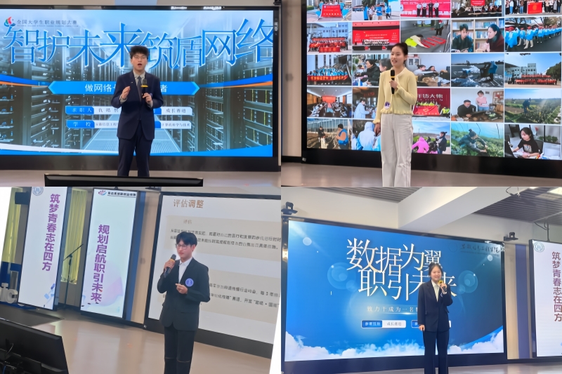 本网讯 11月26日下午,我校第三届全国大学生职业规划大赛校赛决赛在A3W401报告厅举行。本届大赛以“筑梦青春志在四方,规划启航职引未来”为主题,聚焦学生职业规划能力与综合素养提升,引导大学生树立科学职业观、明确发展方向,为学子成长成才搭建优质实践平台。大赛特邀五位校内外权威专家组成评审团,全方位保障赛事评审的专业性与公信力。学校高度重视赛事组织工作,将职业生涯规划教育列为学生发展与就业指导的重点内容。各学院积极响应、广泛动员,通过班级宣讲、院级初选等多形式营造全员参与氛围。赛事采用“班级推荐—学院选拔—校级网评—现场决赛”的四级推进机制,从34名学院推荐人选中经严格评审,最终遴选出12名选手晋级决赛。赛事主办单位紫云英创新创业学院在决赛前针对性组织专项辅导,邀请专家围绕职业目标定位、表达展示技巧、答辩策略优化等核心环节,为选手提供系统化、个性化指导。参赛选手认真备赛、持续打磨方案,充分展现出扎实的规划能力与良好的综合素养。决赛现场,选手通过“PPT展示+现场答辩”的形式,清晰阐述职业