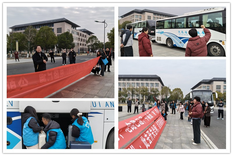 本网讯 12月19日下午,电气与电子工程学院开展2026届考研学子暖心送考活动,为即将奔赴考场的学子保驾护航、传递祝福。学院副院长刘蕾、党总支副书记华静、院长助理张松林、教学秘书刘传柱、行政秘书杨悦、学工秘书卢丽娟、团总支副书记李宁,以及22级全体辅导员、各教研室教师代表齐聚现场,共同为学子加油鼓劲。(图为送考现场照片)送考现场气氛热烈而有序。学院提前安排的两辆送考大巴准时到位,将学子分批安全送达芜湖市第十一中学、第十二中学、田家炳实验中学等六个考点,全力保障每位考生顺利赴考。现场,学生志愿者主动上前协助考生搬运行李,提供暖心服务;送考老师们则细致叮嘱学子检查准考证、身份证等必备证件及考试文具,并用“沉着应考”“一战成硕”等真挚祝福为大家缓解考前紧张情绪,让学子们深切感受到学院的温暖关怀。此次送考活动,不仅彰显了学院对考研工作的高度重视,更生动展现了全院师生团结一心、温情互助的良好风貌。带着全院师生的殷切期望与真诚祝福,相信2026届考研学子定能轻装上阵、从容应试,在考研征程中挥洒才华、