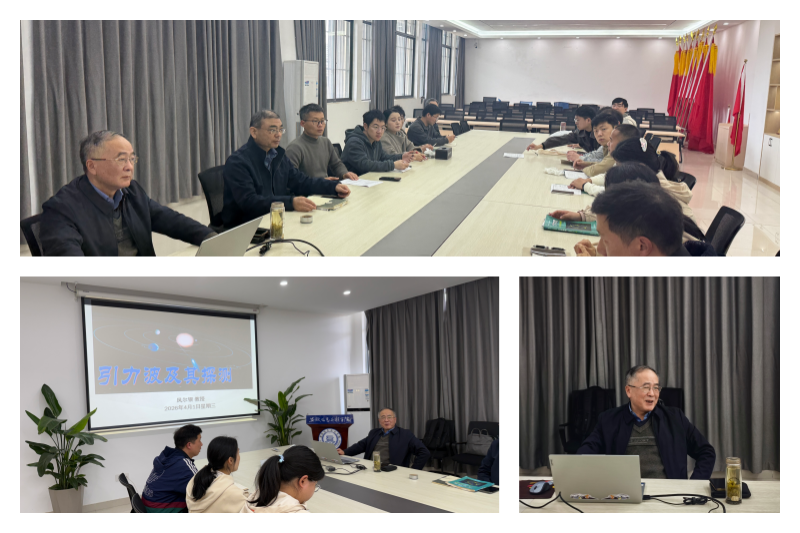 本网讯 为进一步夯实物理学科发展根基,全方位赋能教师队伍科研素养提升与学术格局拓宽,4月1日,通识教育与外国语学院特邀凤尔银教授作题为“引力波及其探测”的专题学术讲座。学院相关领导、物理教研室全体教师及部分感兴趣的师生代表到场聆听。讲座中,凤尔银以牛顿“万有引力定律”、爱因斯坦“狭义相对论”与“广义相对论”为理论基础,系统阐述了引力波的理论预言。他指出,引力波是时空弯曲中的涟漪,以波的形式向外传播,1916年爱因斯坦基于广义相对论首次预言了其存在。(图为讲座现场)凤尔银以科普化视角,通过精心制作的PPT课件和视频资料,带领在场师生沉浸式走进引力波的世界。他生动梳理了韦伯、泰勒等知名物理学家在引力波探测领域的探索足迹,通过视频直观呈现了黑洞合并、碰撞的三个完整阶段,以及两中子星合并产生引力波的全过程,尤其是引力波被首次探测到时那震撼人心的“声音”,给现场听众留下了深刻印象。在阐述引力波探测的意义时,凤尔银结合探测实践分享了深刻见解。他表示:“基础科学是辛苦的、严谨的和缓慢的,又是震撼性的、