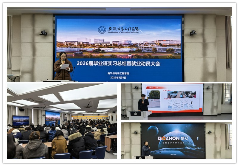 本网讯 为全面总结毕业生实习工作成效,精准部署毕业生就业工作,3月4日上午,电气与电子工程学院在A3博学楼W301召开2026届毕业生实习总结暨就业动员大会。校长助理、学院执行院长马利祥,学院党总支副书记华静,院长助理张松林,毕业班全体辅导员、合作企业代表及全体2026届毕业生齐聚一堂,凝聚共识、明确方向,共同开启春季就业冲刺新篇章。(图为会议现场照片)会议伊始,华静首先对2026届毕业生实习工作进行系统梳理与全面总结,并对毕业生在校期间最后阶段的日常管理、毕业手续办理等工作提出明确要求,重点强调了纪律意识与人身财产安全,叮嘱同学们合理规划剩余校园时光,顺利完成毕业各项事宜。随后,毕业生代表登台发言,结合自身实习经历,分享了实习期间的实践收获、成长感悟与职业思考,为在场其他毕业生提供了宝贵的实习与就业经验参考,传递了积极向上、奋力拼搏的青春力量。接着,博众精工科技有限公司工程部总监李晓晨与人力资源部代表陈俊彦,分别从行业发展趋势、企业人才需求标准及“就业直通车”专项招聘计划等方面进行深入