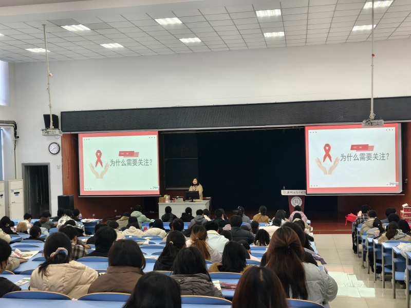 本网讯 为普及艾滋病防治知识,增强师生自我防护意识,持续营造“青春有爱、健康无艾”校园氛围,12月3日,我校后勤管理处联合芜湖市疾病预防控制中心、湾沚区疾病预防控制中心及校团委共同举办“世界艾滋病日”专题知识讲座,为学校防艾系列宣传活动增添精彩篇章。本次活动特别邀请芜湖市疾控中心性病艾滋病防治科科长、副主任医师方艳姣主讲,200余名来自各学院的师生代表现场聆听。讲座中,方艳姣结合全国及芜湖市最新艾滋病疫情数据、青年群体感染典型案例,围绕性病与艾滋病的核心传播途径、科学预防手段及校内外检测资源获取方式展开系统解读。针对大学生群体特点,她重点强调了关键防护要点,并对现场师生提出的“日常接触是否感染”等问题逐一细致答疑。讲座后,后勤管理处徐萍老师代表学校感谢市、区疾控的长期支持,并回顾了“趣味运动会—百人跑寝—专家讲堂”三段式宣传历程,并向师生发出倡议:“把疑问带进来、把知识带回去、把关爱传出去”,共同筑牢校园健康防线。(图为讲座现场)本次系列讲座有效提升了在校大学生对艾滋病防治知识的知晓率与