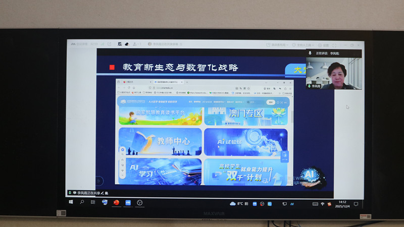 本网讯 为顺应人工智能技术发展趋势,推动AI技术与工科课程深度融合,探索课程建设新路径、新方法,助力新工科专业建设提质增效,12月4日,教务处邀请北京理工大学李凤霞教授开展 “AI背景下面向新工科的课程建设新思路” 线上工作坊。学校省级智慧课程团队负责人及团队成员、各学院骨干教师代表参加此次活动,工作坊由教务处副处长程玉林主持。李凤霞围绕教育新生态与数智化战略、新工科理念与未来教育、AI 通识课程与建设思路三大核心板块展开。在教育新生态与数智化战略板块,她结合国家智慧教育公共服务平台建设成果,解读了习近平总书记关于深入实施国家教育数字化战略的重要指示,以及《教育强国建设规划纲要(2024—2035年)》等政策文件要求,分享“人工智能+高等教育”典型案例,强调AI技术是教育数字化转型的核心动力。在新工科理念与未来教育板块,她指出新工科建设需实现从学科导向到产业需求导向、专业分割到跨界交叉融合、适应服务到支撑引领的转变,核心是围绕产业需求建专业、紧跟技术发展改内容,深入剖析“课程”与“教学”