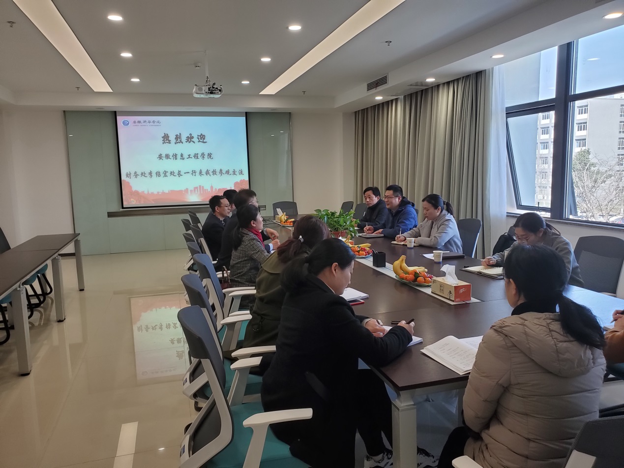 本网讯 3月12日,学校财务处处长李绍宏、处长助理王程及资产管理处主管谢宁等一行5人赴安徽新华学院进行工作调研。本次调研的主要目的是学习新华学院在财务管理、采购管理、资产管理等方面的成功经验。安徽新华学院财务处处长江赵龙、采购部部长胡世暴、总务处副处长卞国锋等对调研团队的到来表示了热烈的欢迎,并对学校及各部门的情况做了简要介绍。随后调研团队和新华学院相关领导围绕成本管控、食堂商超经营管理、校园一卡通建设、收费平台建设、电子发票开具、采购招投标、资产管理等具体问题进行了充分的交流,现场讨论热烈。(安徽新华学院调研会现场)通过此次调研,深入了解了安徽新华学院在财务管理、采购管理、资产管理工作中好的经验和做法,为以后互相学习、共同进步奠定了良好的基础。(安徽新华学院财务处江赵龙处长介绍部门概况)(安徽信息工程学院财务处李绍宏处长正在咨询)(文/梁爽、图/梁爽、核/王程、审/李绍宏)