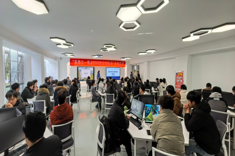 本网讯 为深化产教融合、创新人才培养模式,促进学生高质量就业,近日,安徽信息工程学院与博众精工科技股份有限公司校企合作共建的“安信工—博众就业直通车班”正式开班。电气与电子工程学院党总支书记骆军、机械工程学院党总支书记樊钒、博众精工校企合作部经理陈彦俊出席开班仪式,相关师生代表参加仪式。(图为开班仪式)开班仪式上,电气与电子工程学院院长助理张松林首先就“就业直通车班”的课程设置、教学安排及培训要求进行了详细阐述。他介绍,本次培训课程紧密结合博众精工企业实际生产需求与行业技术前沿,旨在强化学生的工程实践能力与岗位胜任力,为学生顺利衔接企业岗位奠定坚实基础。随后,陈彦俊重点强调了本次培训班的纪律要求与考核标准,明确了学员需完成的学习任务与达标线;同时,他向学员们系统介绍了完成培训并通过考核后的岗位安排与职业发展通道,为同学们描绘了清晰的职业前景,增强了学员们的学习动力与信心。樊钒在寄语中勉励全体学员。他希望同学们珍惜此次校企联合提供的宝贵学习平台,在培训中端正学习态度、刻苦钻研,切实掌握扎实