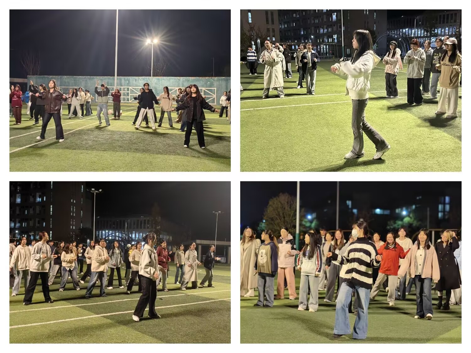本网讯 夜幕降临,体育公园灯光准时点亮,动感音乐响彻夜空,悦动的舞姿成为校园里最靓丽的风景线。自10月28日起,由通识教育与外国语学院主办的“活力对决,健康同行”晚间操系列活动已成功举办五期,累计500多人次参与。日前,随着第五期活动的落幕,系列活动圆满收官。(图为活动过程)本次晚间操系列活动打破传统健身形式局限,兼具健身实效与趣味体验。为了缓解同学们的学业压力,倡导健康生活方式,学院学生会前期广泛调研学生需求,邀请体育教研室老师量身编排了融合流行音乐与基础健身动作的韵律操。整套动作简洁有力、节奏明快,既保证锻炼效果,又充满趣味性,完美适配大学生日常运动需求。同时,学院选拔并培训多名优秀领操员,全程引导学子从热身拉伸到成套动作完整演练,逐步舒展身姿、激活活力。从第一期的生疏试探到第五期的默契配合,同学们的热情始终未减。即便寒意渐浓,大家依旧准时集结,在音乐中尽情舞动。欢声笑语与动感旋律交织,不仅打破了同学间的隔阂,更让大家在集体运动中收获了归属感。(图为集体合影)作为学院“一站式”学生社